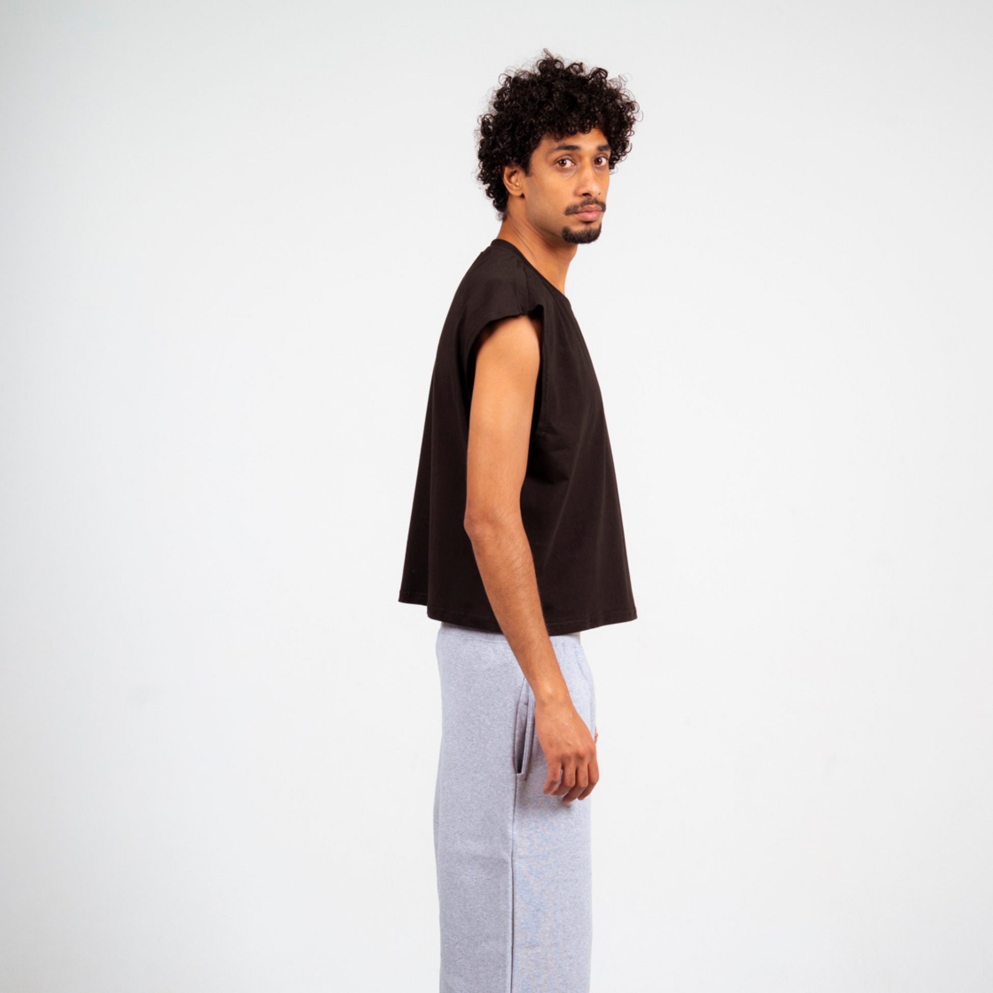Built for movement, styled for expression — the Muscle Tank is crafted from 180 GSM brassola cotton, giving it a soft yet substantial feel. With a cropped, boxy silhouette and wide shoulder openings, this piece brings an effortless edge to your everyday fits.