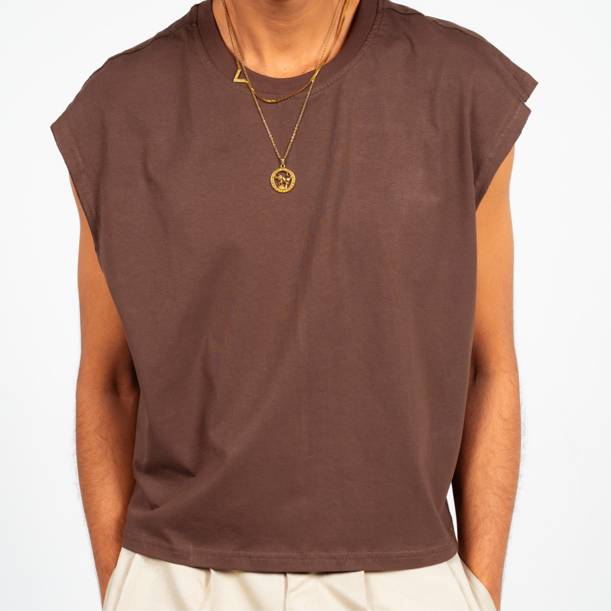 Built for movement, styled for expression — the Muscle Tank is crafted from 180 GSM brassola cotton, giving it a soft yet substantial feel. With a cropped, boxy silhouette and wide shoulder openings, this piece brings an effortless edge to your everyday fits.