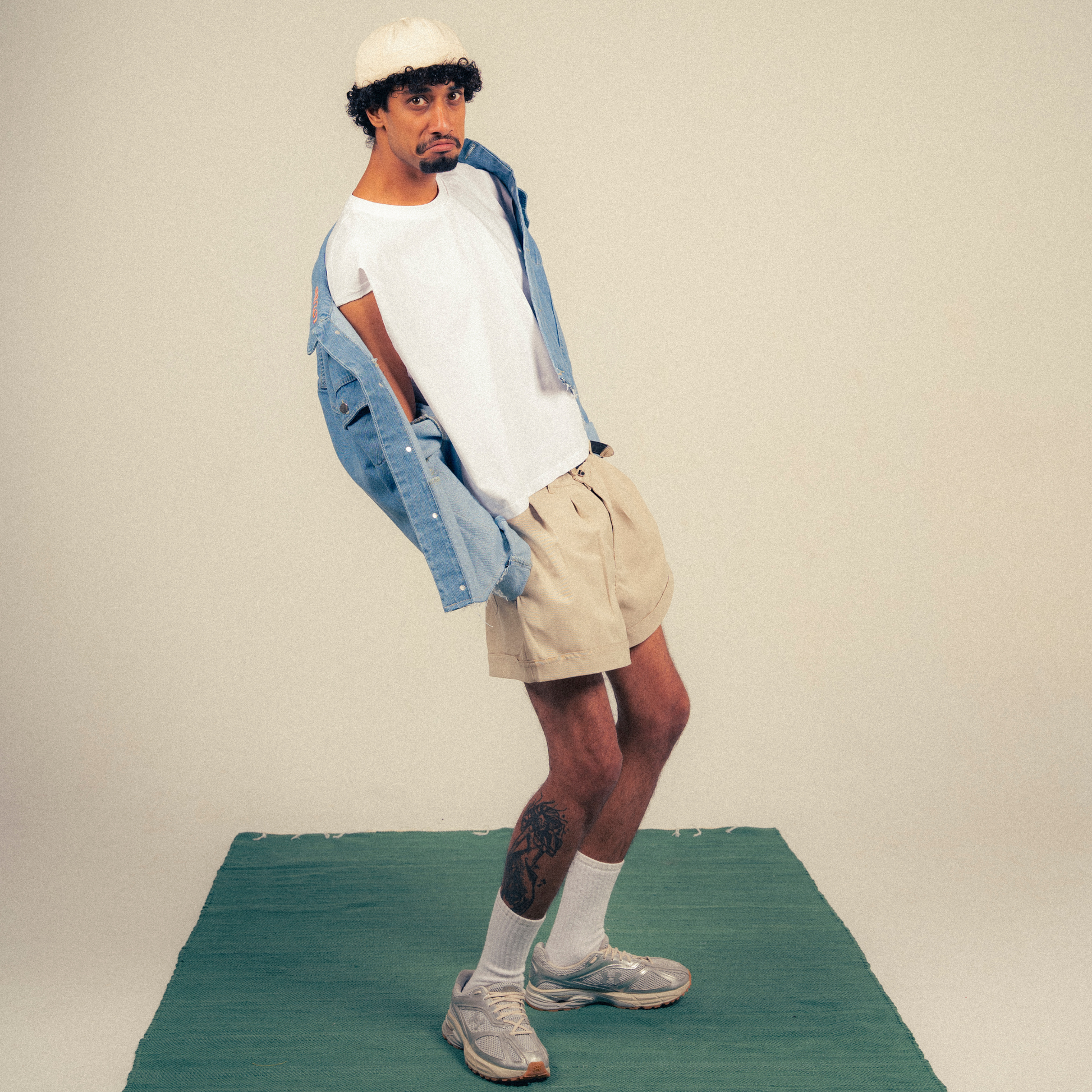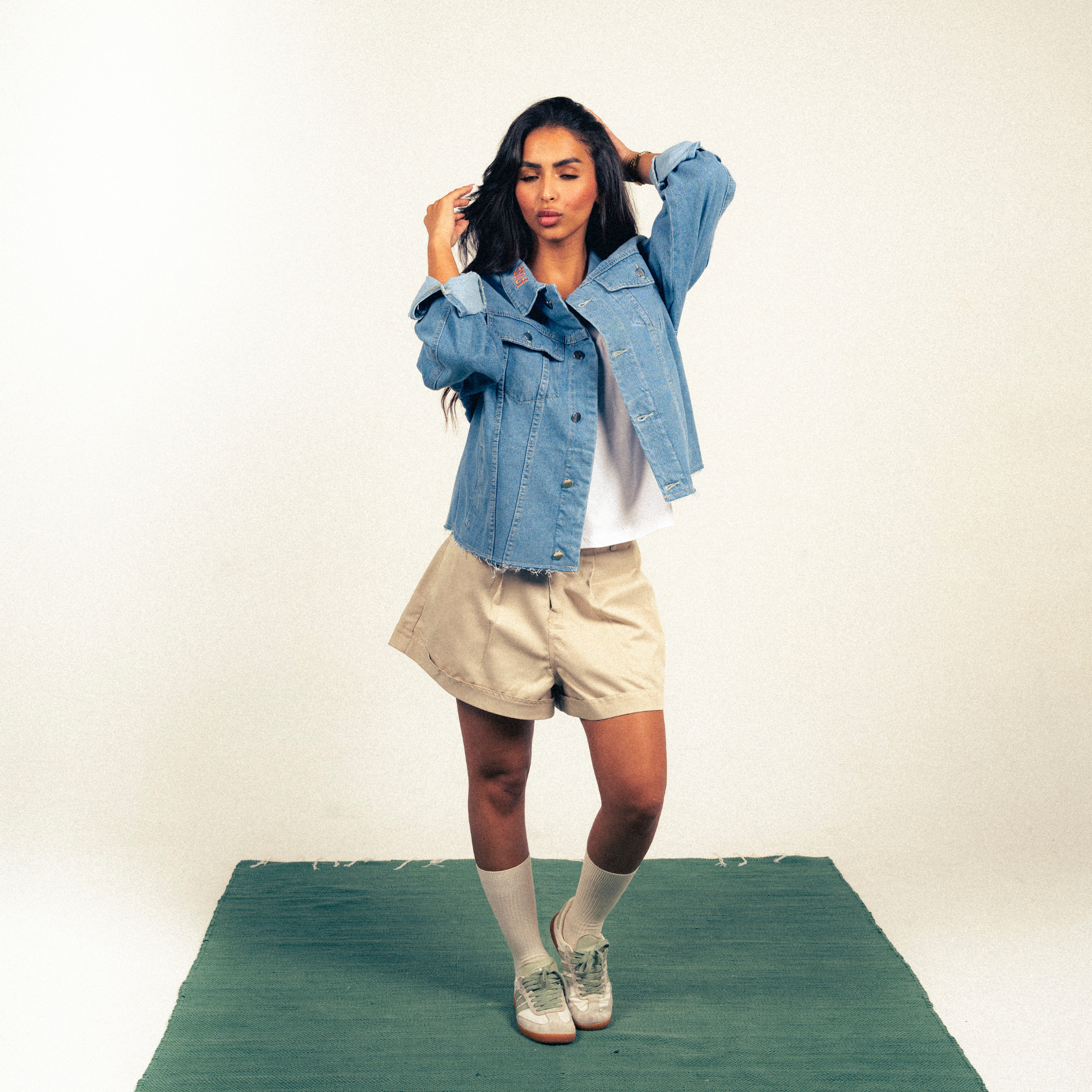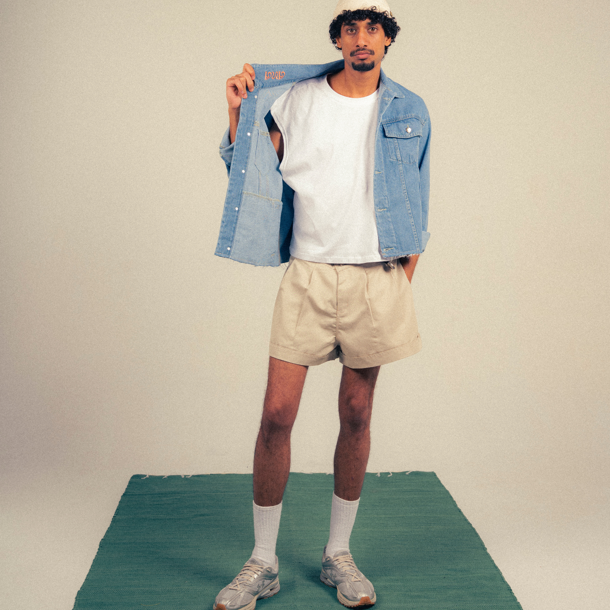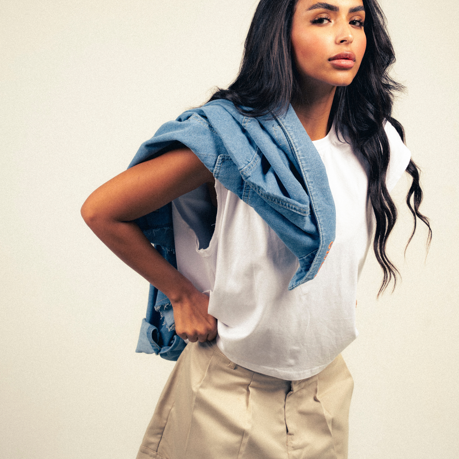The tank, the short, the denim. Three quiet forms that belong to the same silence.